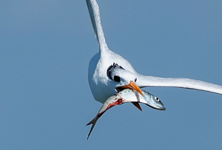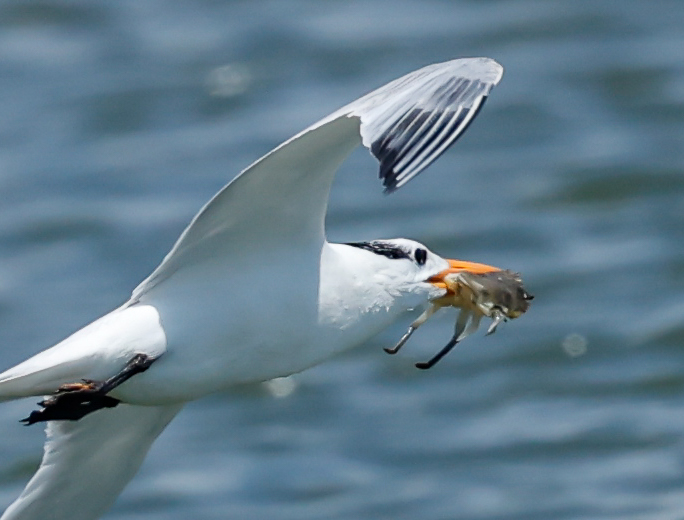 Royals were using juvenile menhaden that were mostly two to four inches in length. Referred to as peanut bunker, these juvenile menhaden are abundant in the Chesapeake Bay and form dense “bait balls” that are ideal for use by royal terns. On calm days these bait balls may be seen dotting the water surface throughout many areas of the Bay