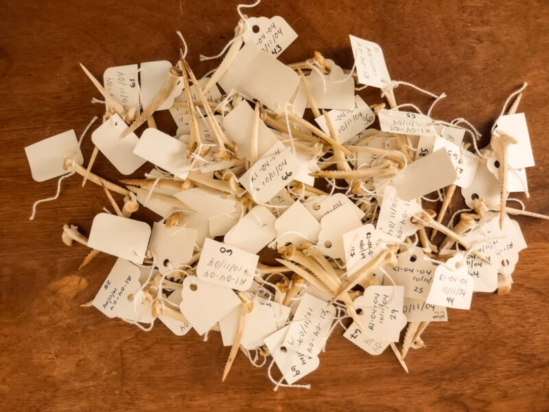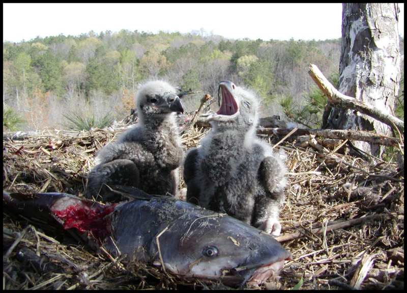 Between 2004 and 2007 I visited many eagle nests in the fall after the breeding season and collected more than 500 catfish spines. The spines were identified by Amanda Duvall who was a graduate student working with Michael Fines in the Virginia Commonwealth University Biology Department. Amanda worked on a thesis developing techniques for identifying catfish spines in the Chesapeake Bay. The species composition within the later sample was strikingly different than the earlier sample. Blue and channel catfish accounted for 58.6% and 25.7% of all samples collected. White catfish and bullheads accounted for 9.0% and 6.7%, respectively. Introduced invasive catfish now account for 84.3% of catfish used. In a very short period of time, invasive catfish have increased in importance as fish used to provision broods from 37.8% to 84.3%. The introduction of these invasives into the Chesapeake Bay ecosystem is having an ongoing impact on the native fish community. Ever the adaptable predator, bald eagles are adapting to the new menu.