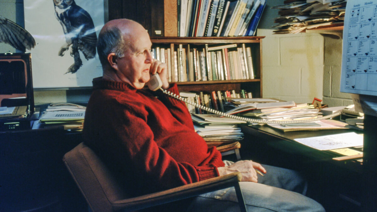 During the 25 years between 1970 and 1995, Dr. Byrd would have his most productive period. He was everywhere all the time, exhibiting tremendous energy and endurance. He advised 35 graduate students and worked on the thesis committee of scores more. Beyond his classroom responsibilities, he reveled in providing undergraduate students with their first field experience with birds. He would lead many students into the conservation field. He edited two chapters on threatened and endangered bird species in Virginia for symposium volumes. He organized national symposia on osprey and black bears. He hosted international scientific meetings and served on several committees for scientific associations. He served on several boards for land-based conservation groups. Governor Robb appointed Dr. Byrd to the Caledon Task Force. Dr. Byrd and students collected extensive data on eagles in the area that resulted in the delineation and protection of the Caledon Natural Area. Negotiations with Maryland led to the only designated protected waters for nonbreeding eagles in the Chesapeake Bay. He was appointed to lead the U.S. Fish and Wildlife Service Chesapeake Bay Bald Eagle Recovery Team that produced an initial recovery plan and a revision. He was appointed to the U.S. Fish and Wildlife Service Eastern Peregrine Falcon Recovery Team. He flew the first heron survey in the mid-Atlantic region in 1975. He took over the bald eagle breeding survey in Virginia in 1977 and helped conduct the survey for 40 years. He managed the peregrine falcon reintroduction program in Virginia releasing 242 captive-reared falcons between 1978 and 1993 and recovering the population to pre-DDT levels. He monitored osprey throughout the lower Chesapeake Bay for 20 years. He conducted the first systematic survey for red-cockaded woodpeckers in southside Virginia and the first piping plover survey in coastal Virginia. Dr. Byrd fought against numerous contaminants proposed for use around the Chesapeake Bay including Carbofuran that was particularly lethal to birds. He testified and wrote against the approval of many land development projects that he felt were sited in sensitive areas. Dr. Byrd gave hundreds of presentations to scientific organizations, agencies and citizen groups throughout the region. He set up a fund within William & Mary and placed honorariums received for talks to support conservation and student projects.