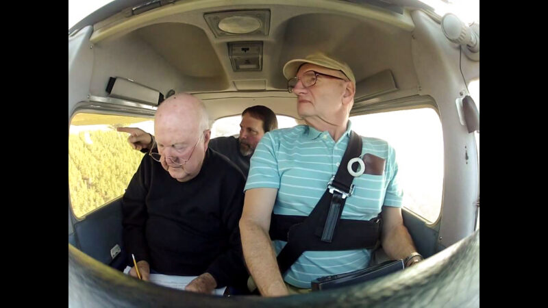 Mitchell Byrd, Bryan Watts, and Captain Fuzzzo Shermer conducting a bald eagle flight survey. Photo by Bryan Watts.